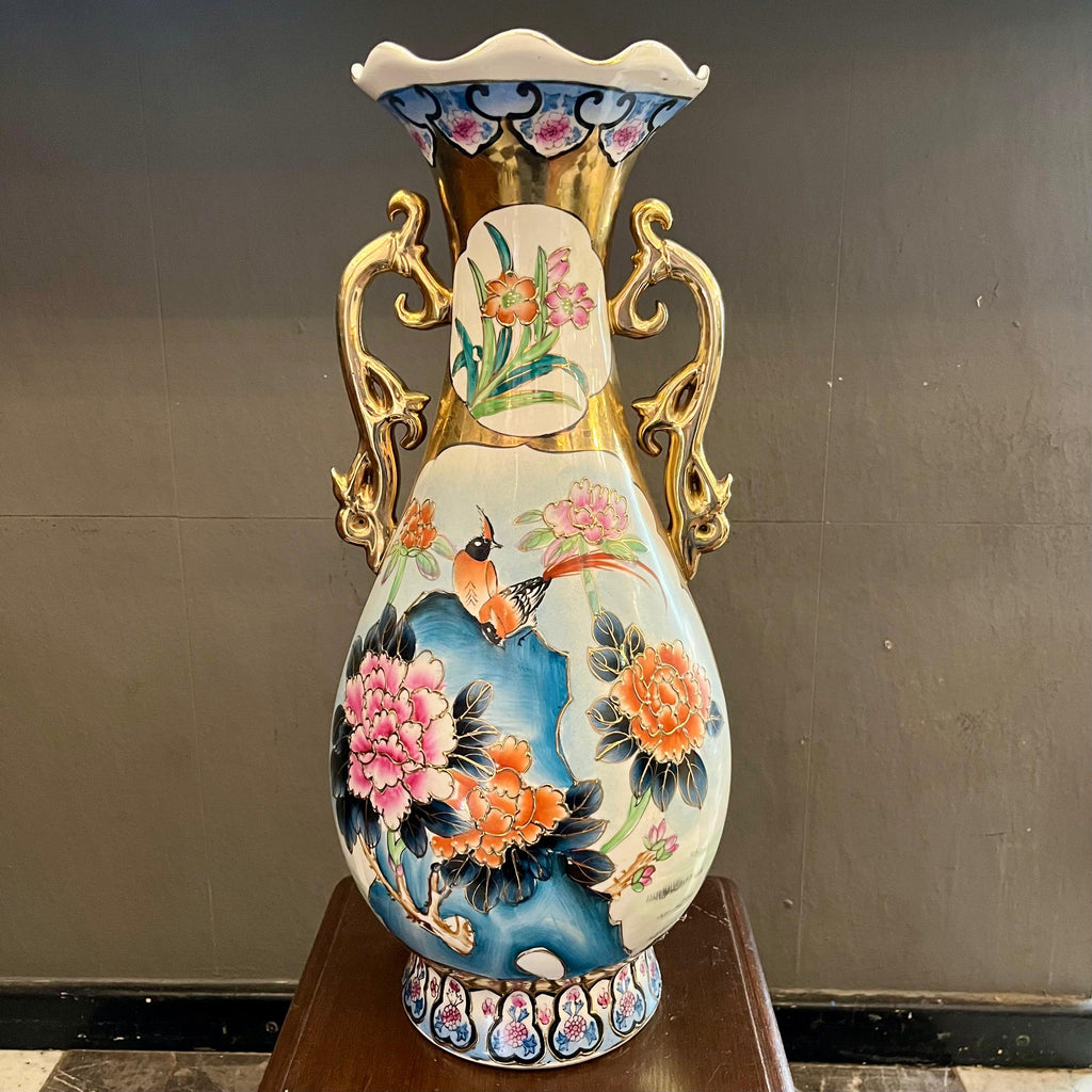 Large Hand-Painted Italian Majolica Vase, Signed and Dated 2001