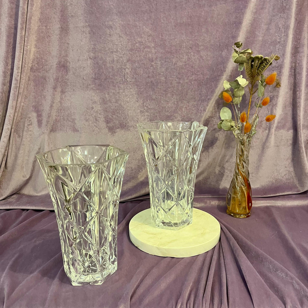 Stylish Cut Crystal Vase with Star Motif and Faceted Design