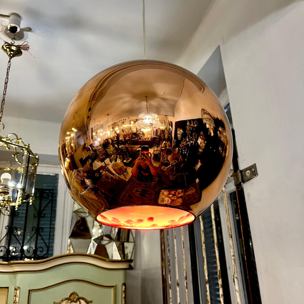 Cast Brass Three Arm Chandelier with Frosted Rose Globes