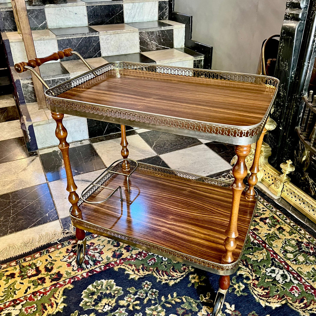 Vintage Two-Tier Drinks Trolley with Brass Gallery, c. 1960s - SOLD