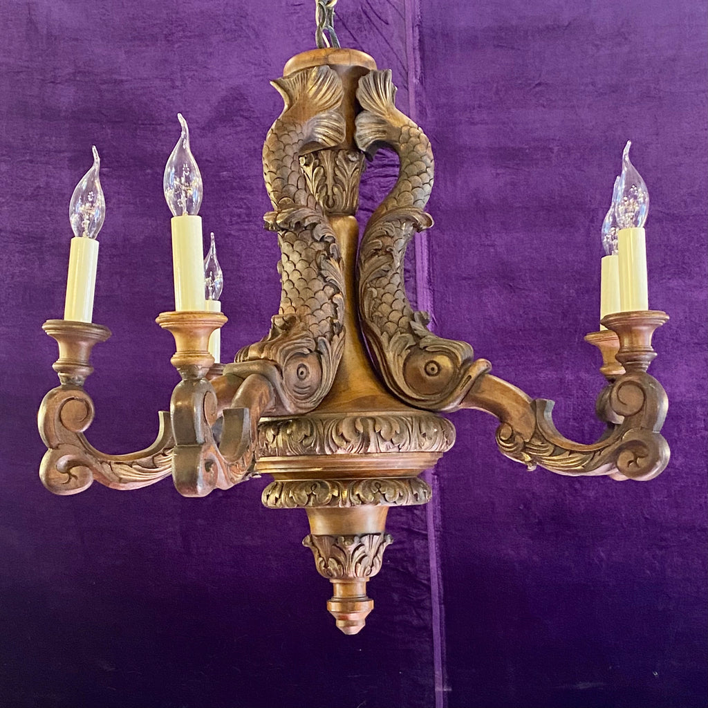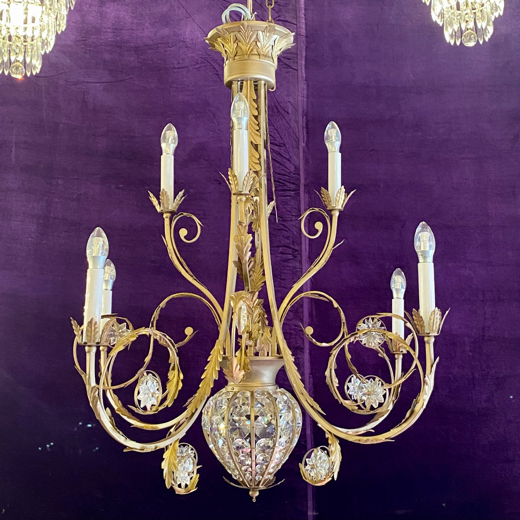An Unusual Gilt Metal Chandelier with Crystals - SOLD