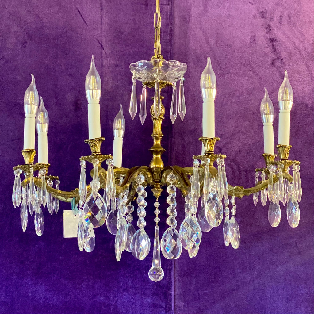 Heavy Antique Mazarine Chandelier with Crystals Drops - SOLD