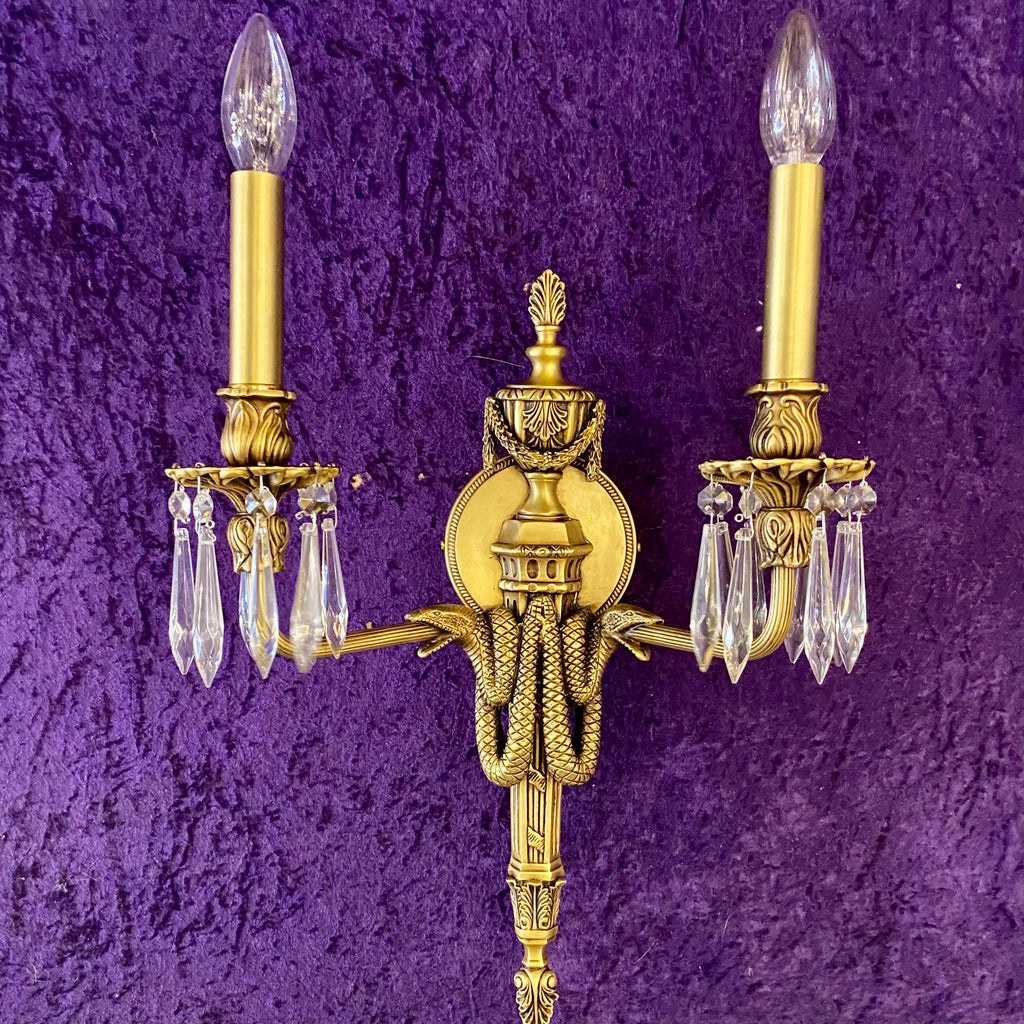 Polished Brass Wall Sconce with Serpent Details - SOLD