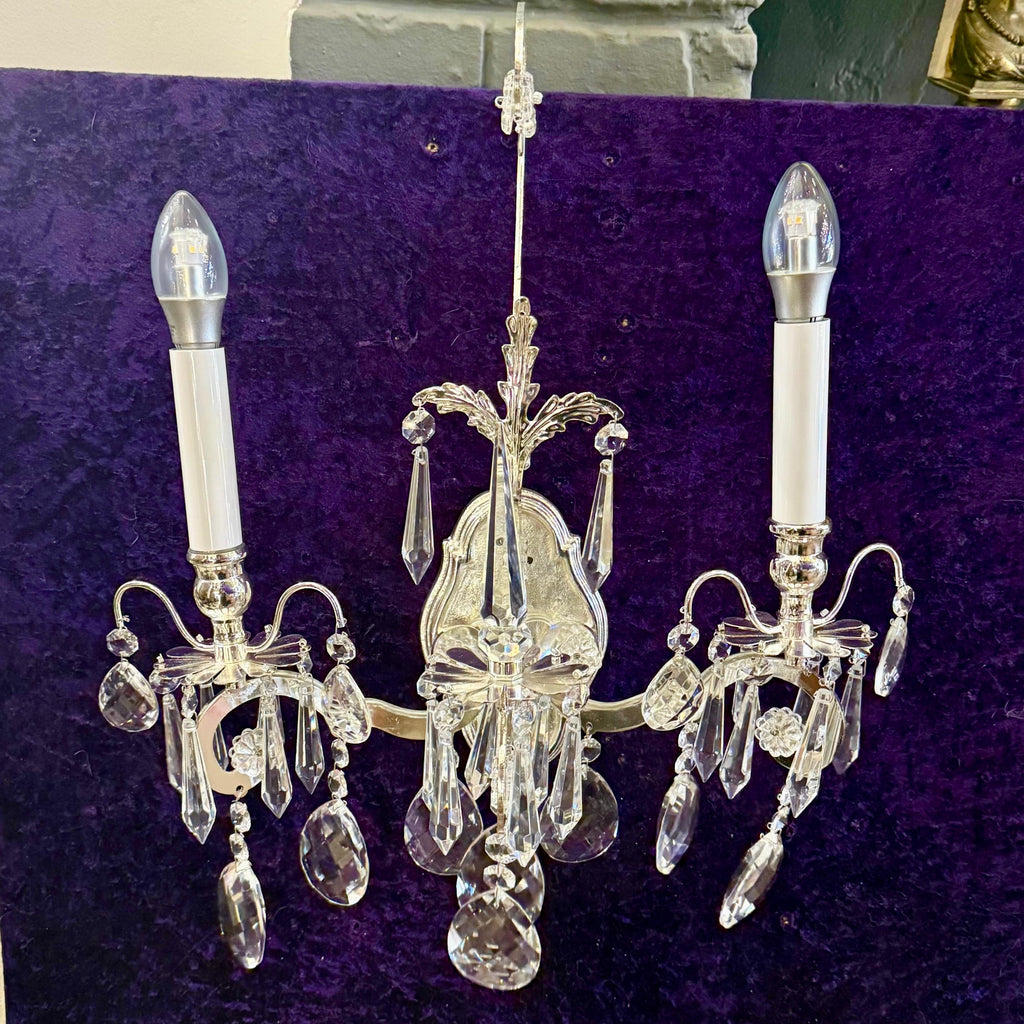 Beautiful Two Armed Nickel and Crystal Wall Sconce